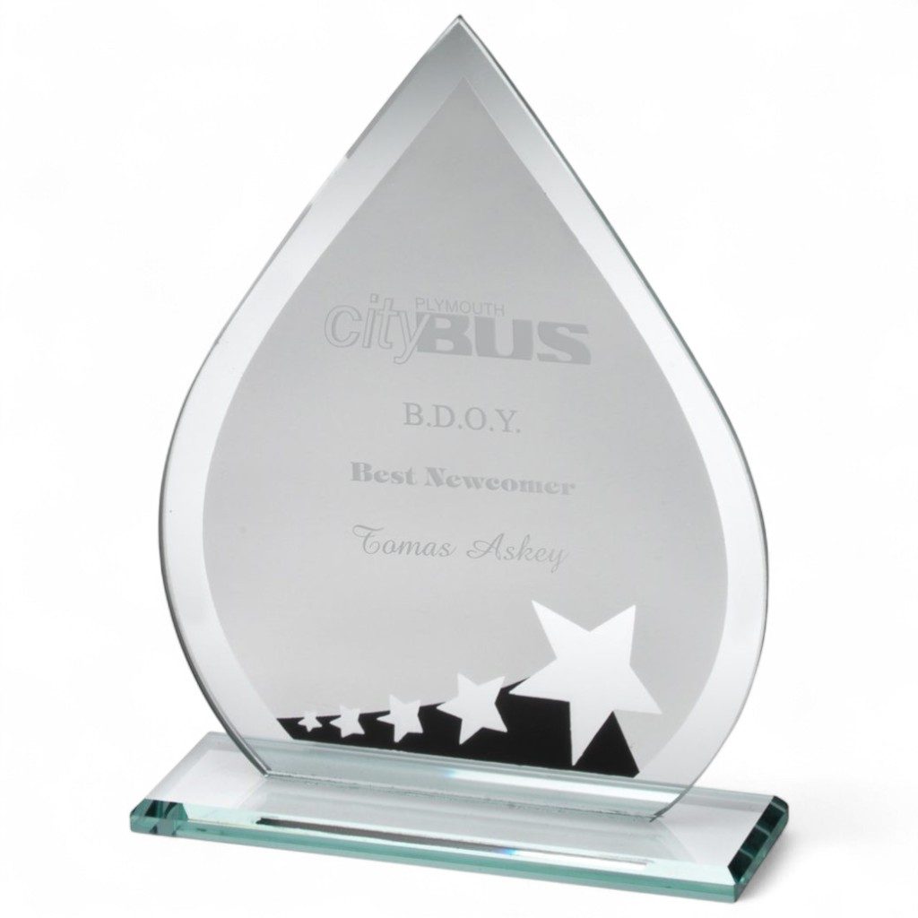 Celebrate excellence with the Spectrum Jade Crystal Engraved Star Award—a sleek teardrop profile in premium jade glass with a star accent and a generous engraving area. Ideal for corporate, sports, and school presentations.