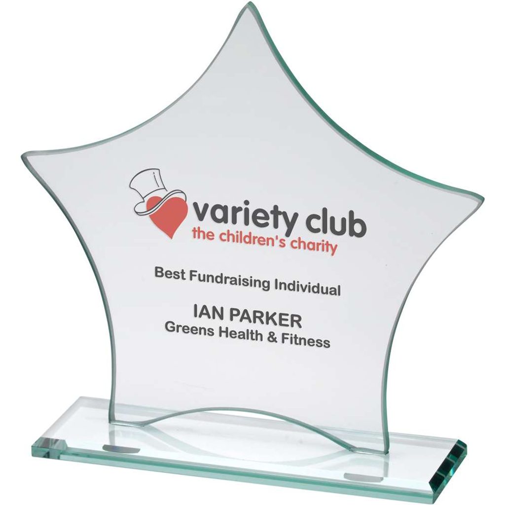 Academic Prestige Trophies Novelty Glass Awards Full Colour Printed Glass Trophies Star Trophies Business and Corporate Awards Printed Glass Business Awards