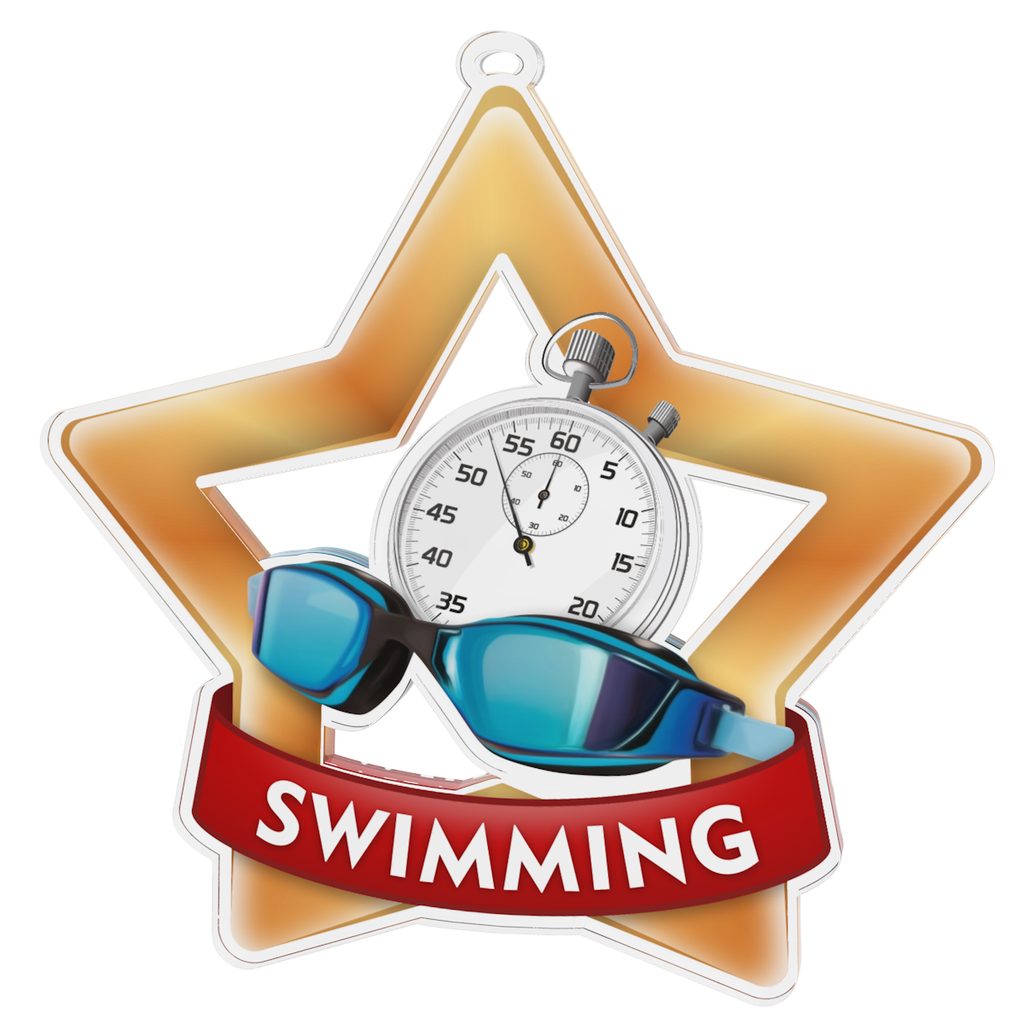 The Swimming Mini Star Bronze Medal is bright, fun, and perfect for young achievers