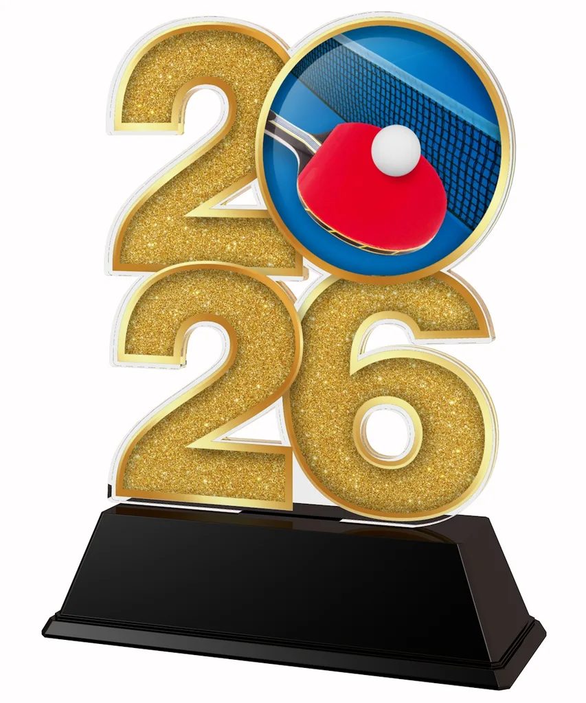Celebrate speed, precision and competitive spirit with the Table Tennis Year Trophy, a bold and modern acrylic award designed especially for table tennis clubs, schools, leagues and tournaments. Featuring a striking year design and full-colour table tennis-themed imagery, this trophy makes a standout centrepiece for any presentation or awards ceremony.