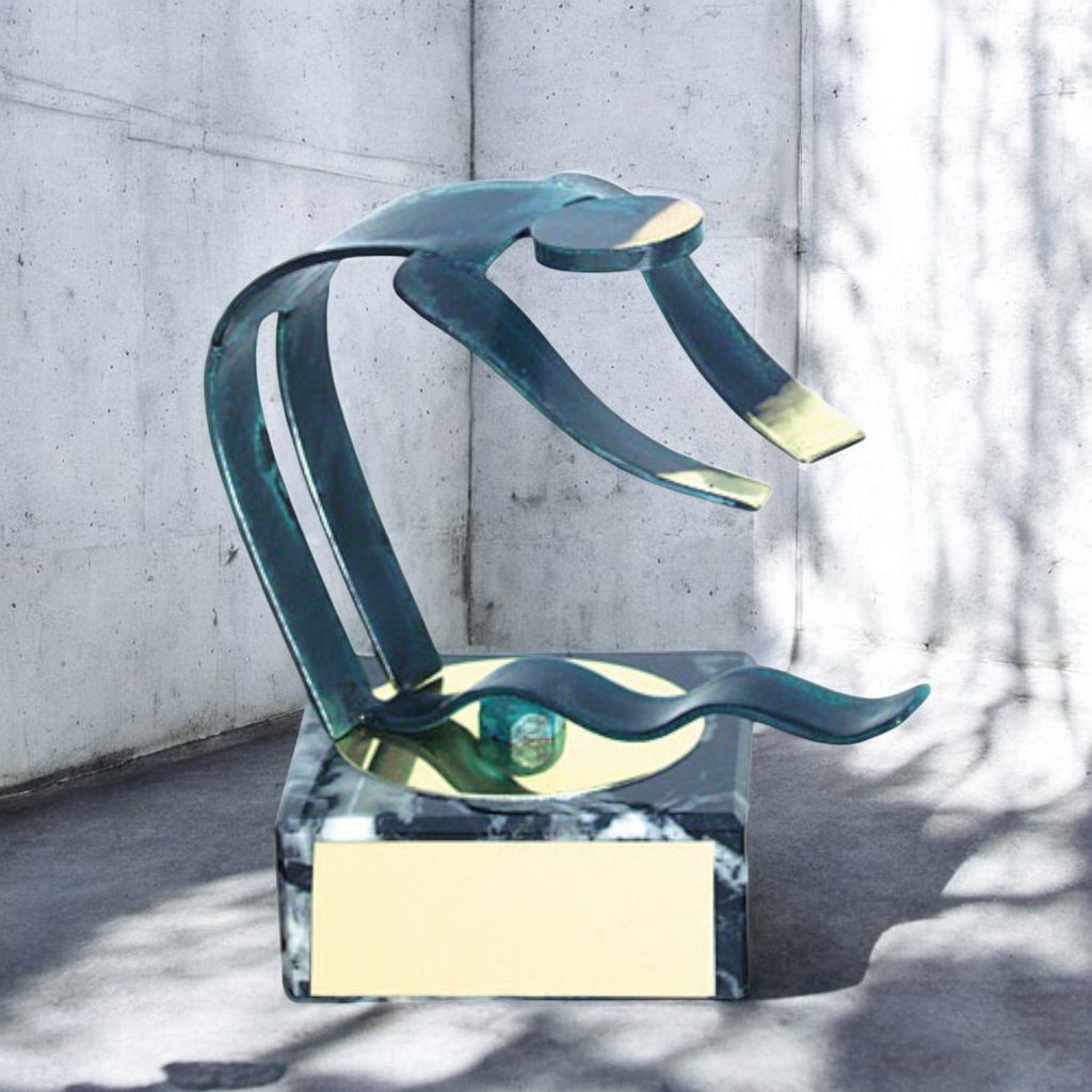 Introducing the exquisite Toledo Diving Trophy, a meticulously handcrafted metal award that exudes elegance and sophistication. This exclusive trophy is expertly mounted on a luxurious marble base, adding a touch of opulence to any space.