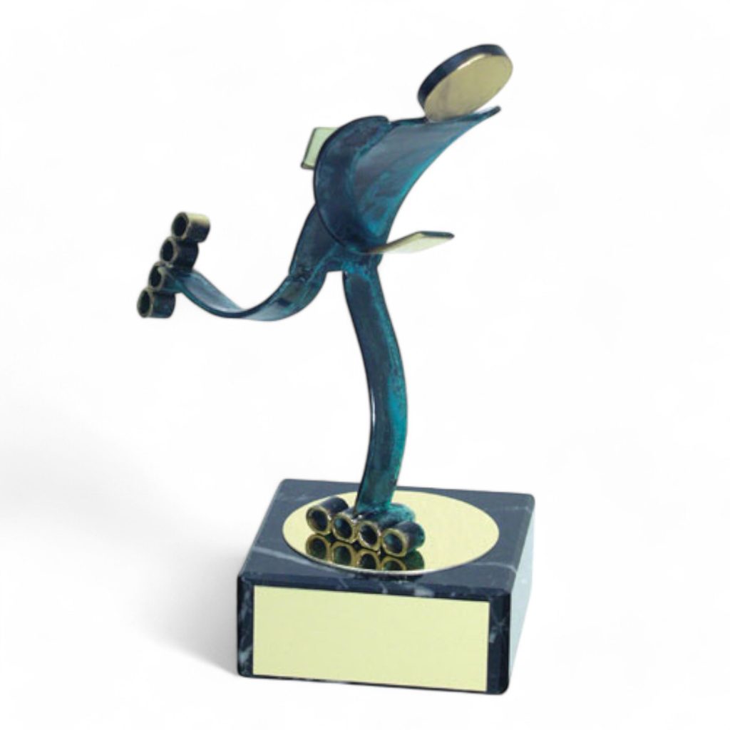 Introducing the exquisite Toledo Rollerskater Trophy, a meticulously handcrafted metal award that exudes elegance and sophistication. This exclusive trophy is expertly mounted on a luxurious marble base, adding a touch of opulence to any space.