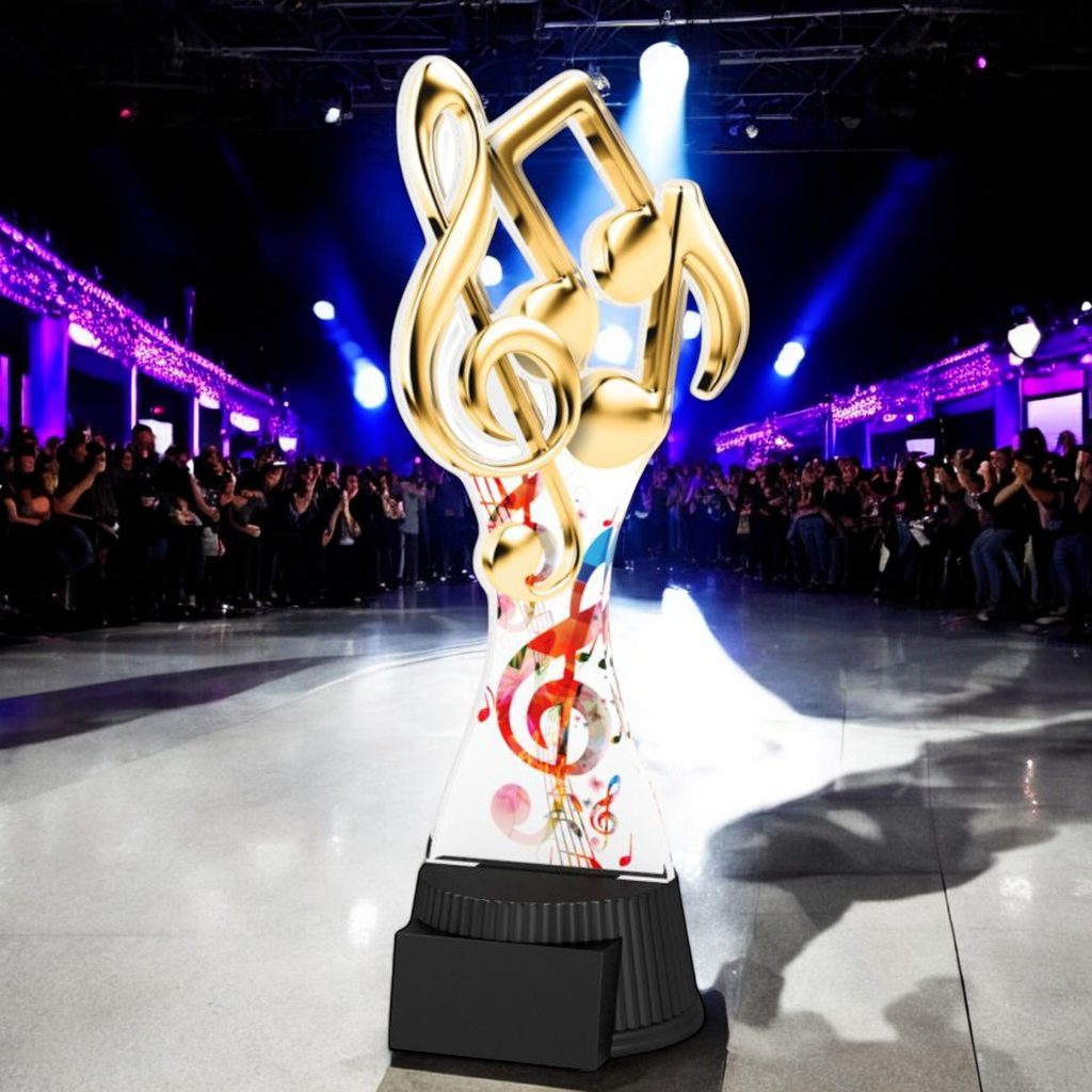 The Toronto Music Notes Trophy is a sleek and contemporary award, designed to make a bold statement at any presentation. With its modern silhouette and eye-catching design, this trophy is the perfect way to honour outstanding achievements in sports, business, and beyond.