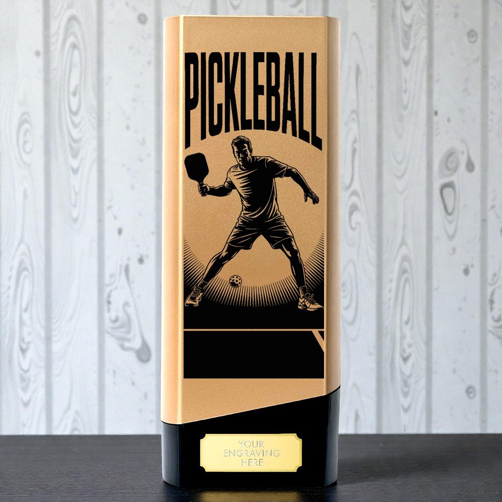 The Tower Elite Men’s Pickleball Trophy celebrates speed, control, and competitive excellence on the pickleball court. Featuring bold modern styling and a commanding heavyweight build, it delivers a professional presence worthy of tournament and league play. Available in four Tower Elite colours and three sizes, it’s ideal for clubs, leagues, and pickleball events.