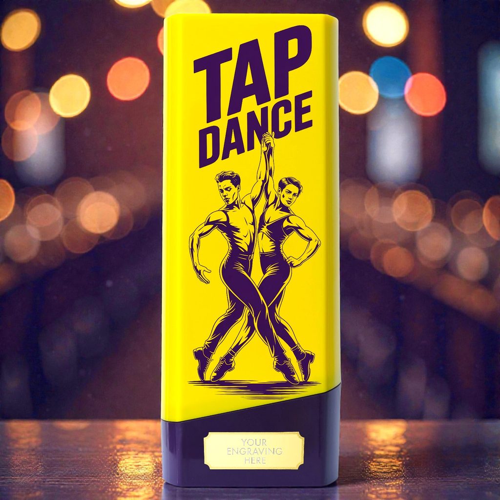 The Tower Elite Tap Dance Trophy celebrates rhythm, timing, and precision in performance. Featuring bold modern styling and a commanding heavyweight build, it delivers a professional presence worthy of tap dance competitions and showcases. Available in four Tower Elite colours and three sizes, it’s ideal for dance schools, studios, and performance events.