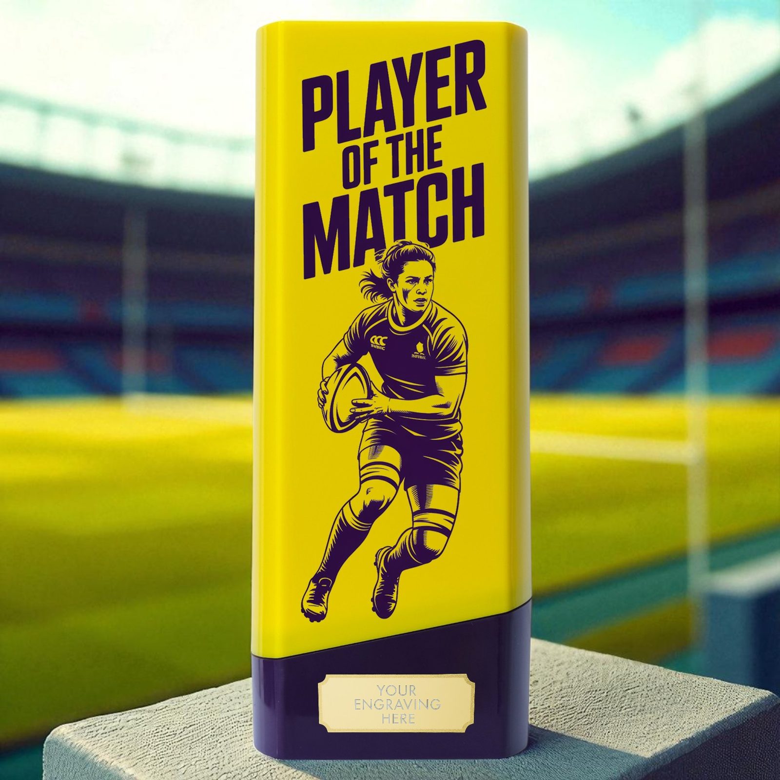The Tower Elite Rugby Heavyweight – Women’s Player of the Match trophy celebrates standout performances in women’s rugby. With a commanding heavyweight build, professional-inspired design, and availability in four Tower Elite colours and three sizes, it’s the perfect award for excellence on the pitch.
