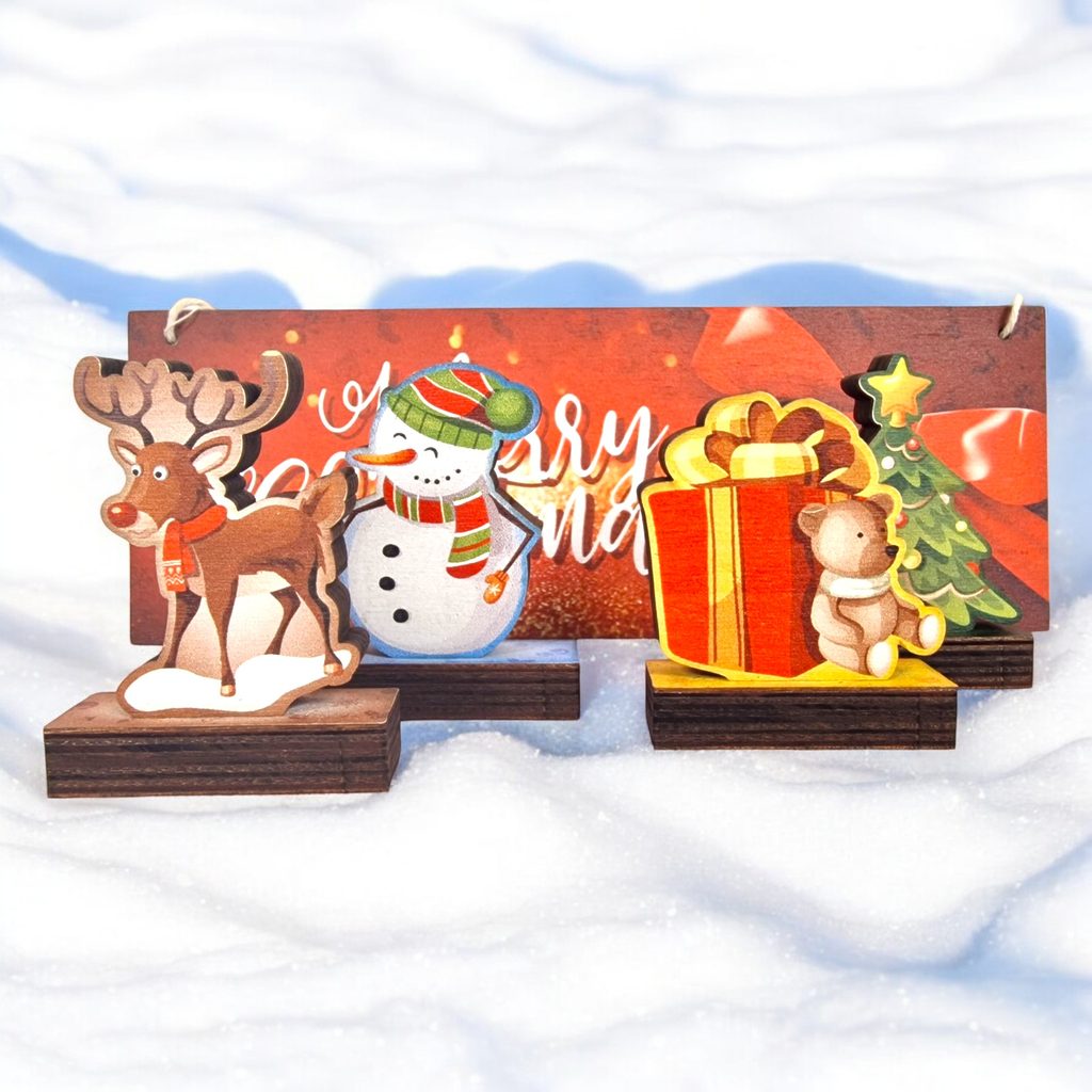 - 1x Hanging Printed Wall Plaque: This beautiful piece is crafted from real wood, adding a natural touch to your holiday decor. Made from 4mm thick birch plywood, it boasts superior quality and durability. Measuring 250x90mm, this plaque showcases our commitment to sustainability through the use of eco-friendly materials.