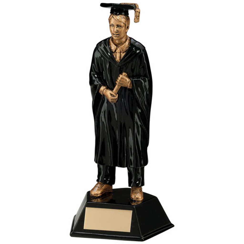 The Tribute Male Graduation Trophy is an eye catching 3D design made from top quality resin, with beautifully displayed detail. Glazed in a stunning colour mix of antique black and gold.