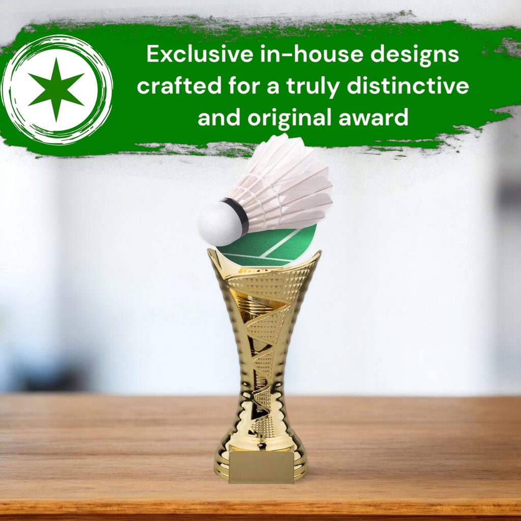 The Trieste Badminton Shuttlecock Trophy blends sleek acrylic with a bold and refined base, creating a striking award for any occasion.