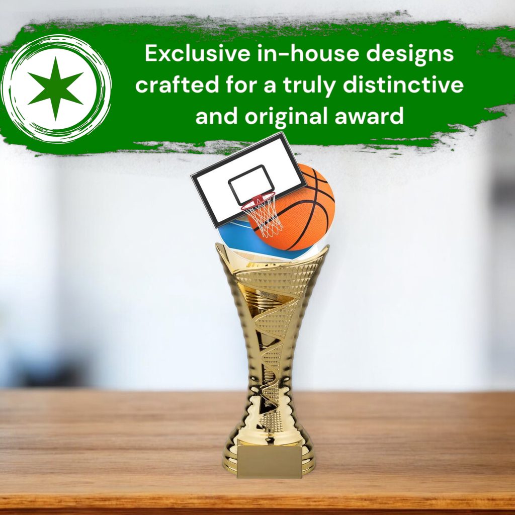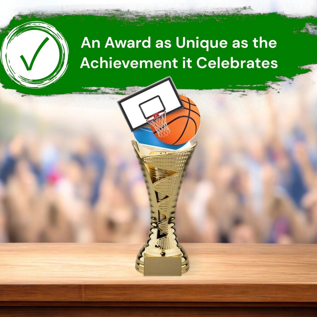 The Trieste Basketball Trophy blends sleek acrylic with a bold and refined base, creating a striking award for any occasion.