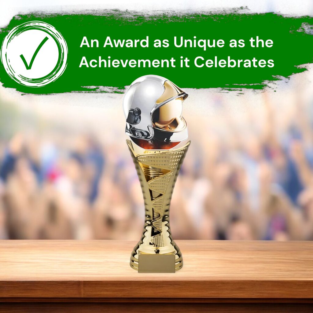 A dynamic and stylish trophy designed to celebrate success with impact and elegance.