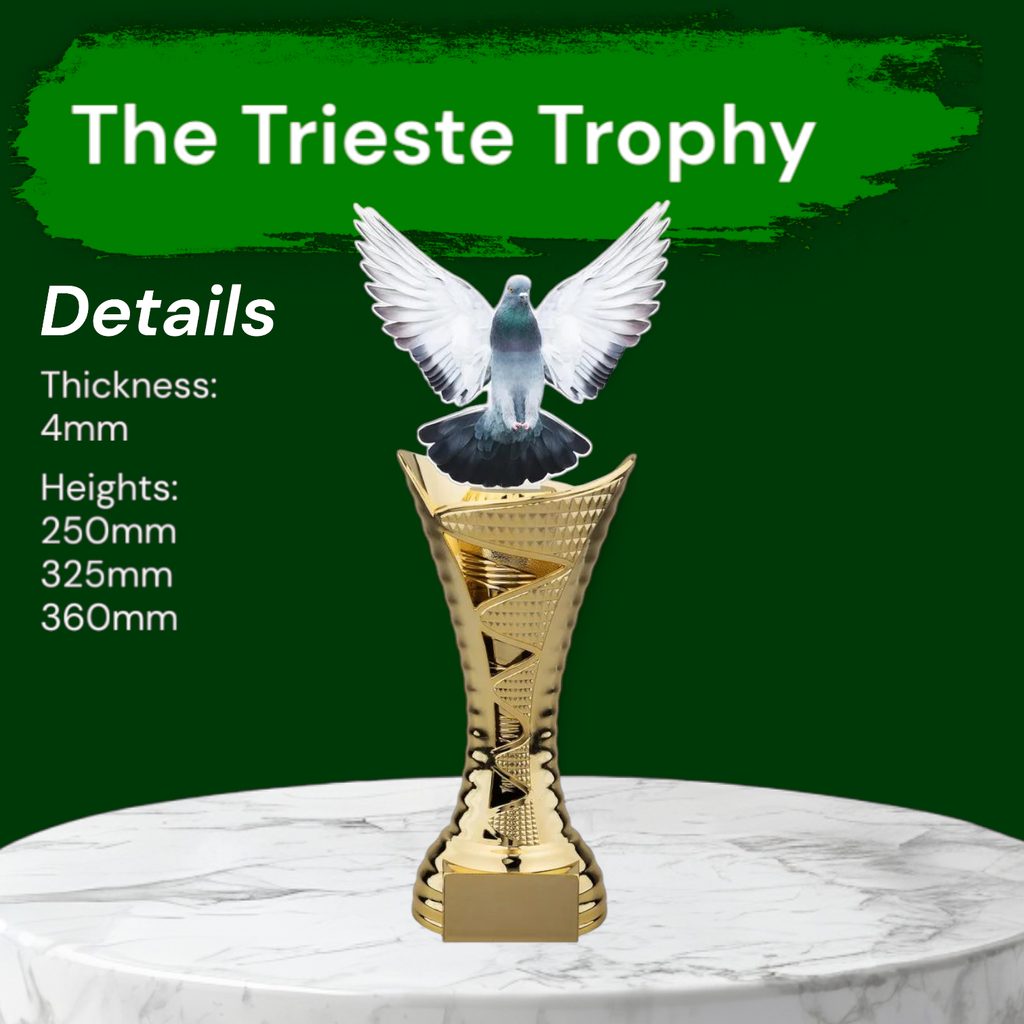 The Trieste Pigeon Trophy blends sleek acrylic with a bold and refined base, creating a striking award for any occasion.