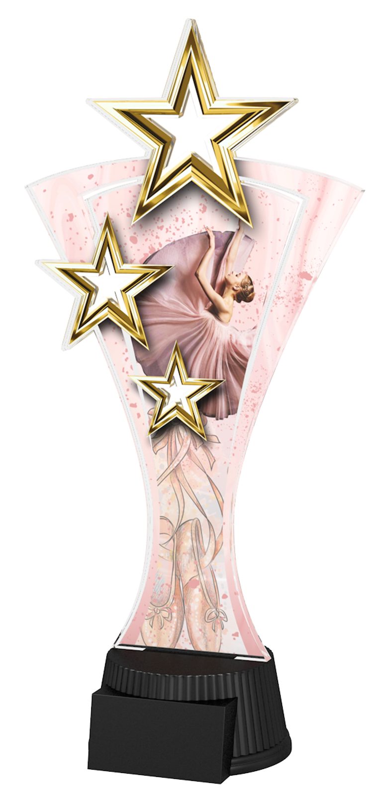 The Triple Star Ballet Trophy is an eye-catching award with a dynamic and bold design.