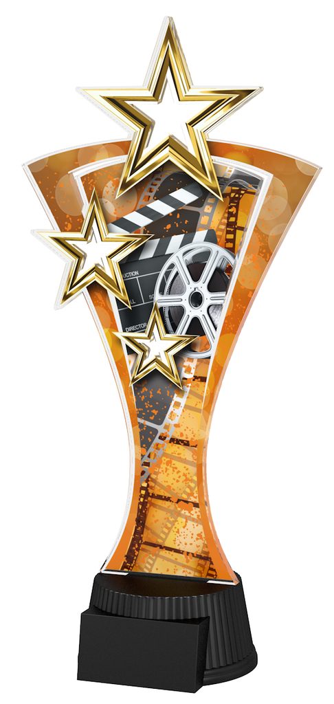 The Triple Star Film Trophy is an eye-catching award with a dynamic and bold design.