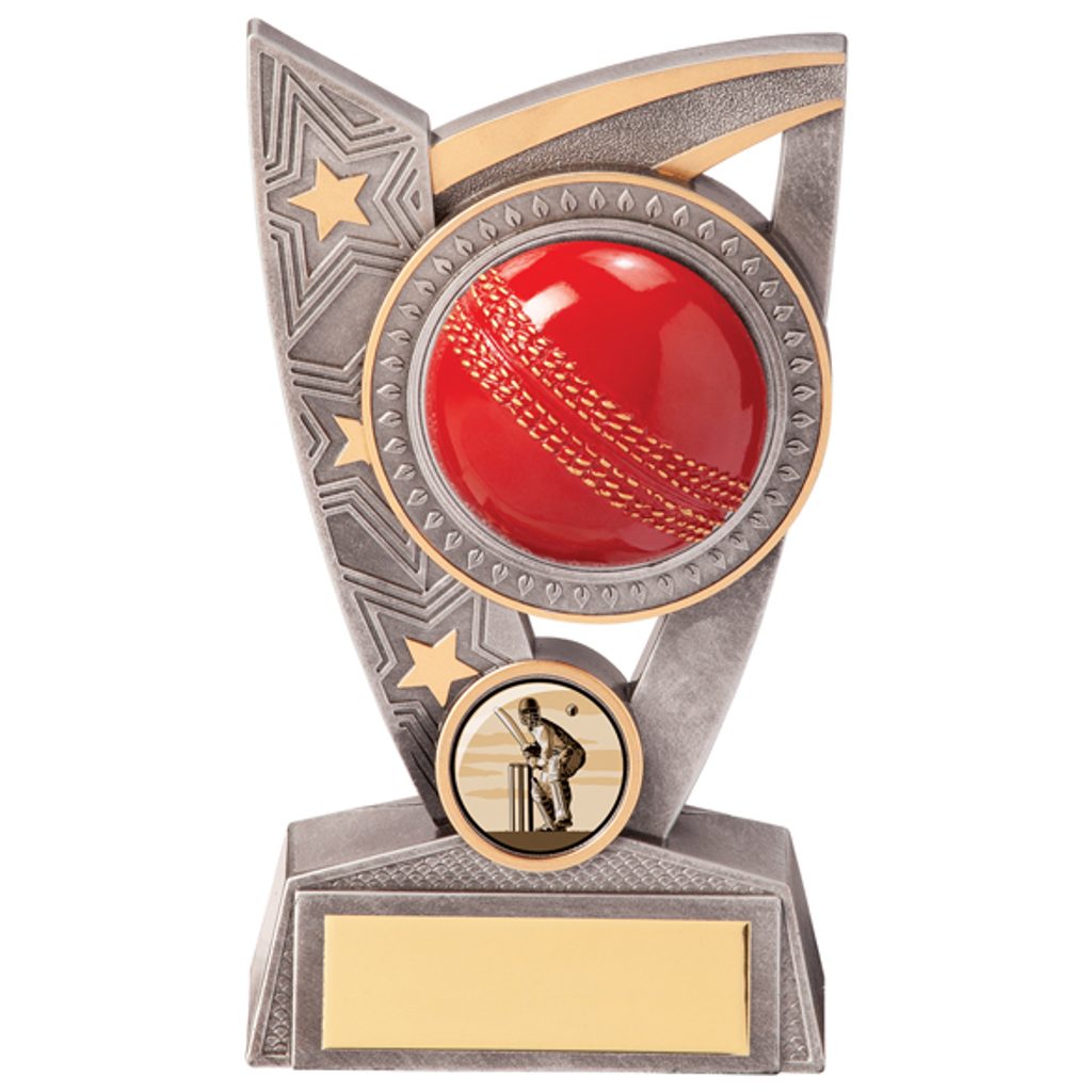 The Triumphant 3D Cricket Ball Trophy is a high definition design made from top quality plastic, with beautifully displayed detail. Glazed in a stunning colour mix of antique silver and gold, and featuring a 3D true colour cricket ball design.