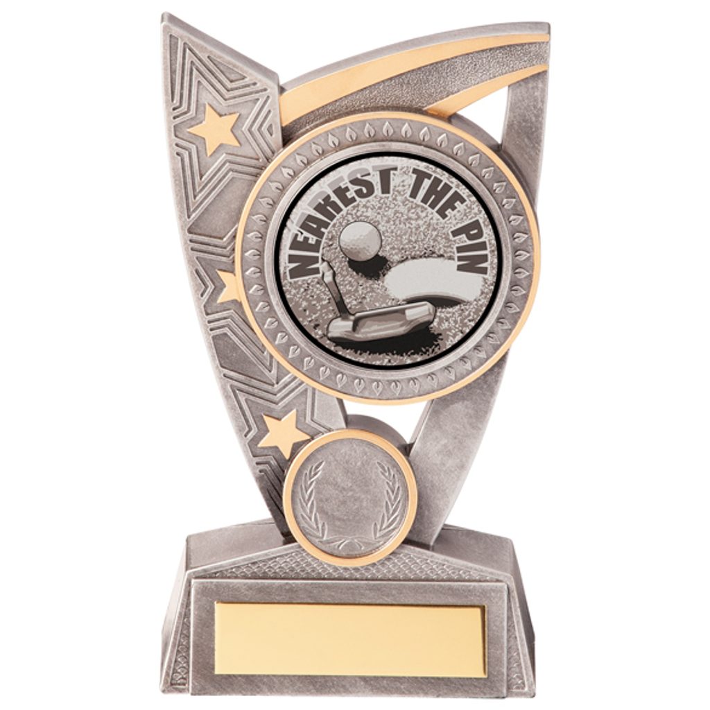 The Triumphant Golf Nearest the Pin Trophy is a high definition design made from top quality plastic, with beautifully displayed detail. Glazed in a stunning colour mix of antique silver and gold.