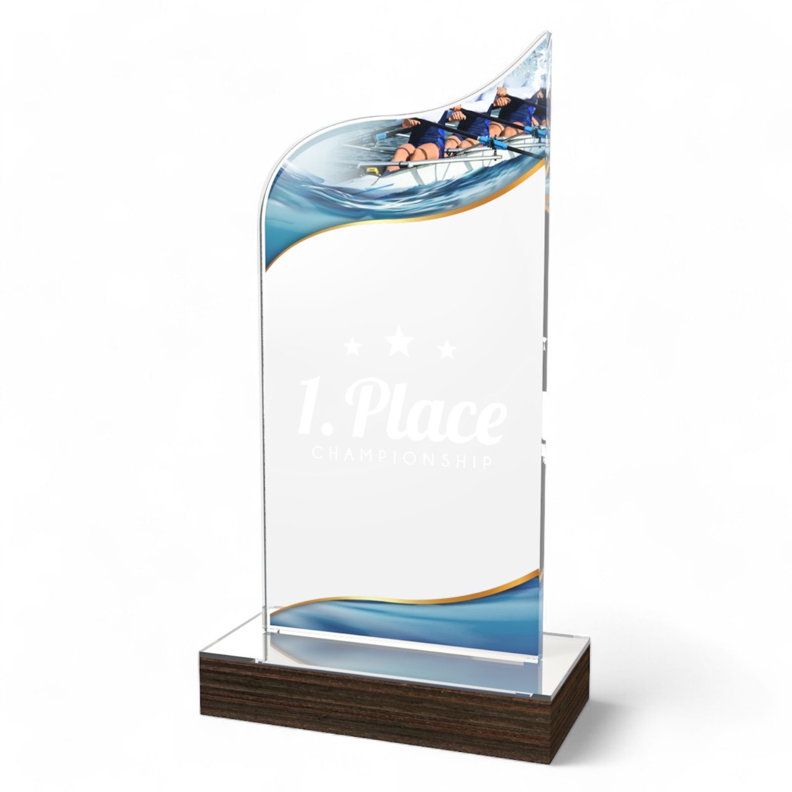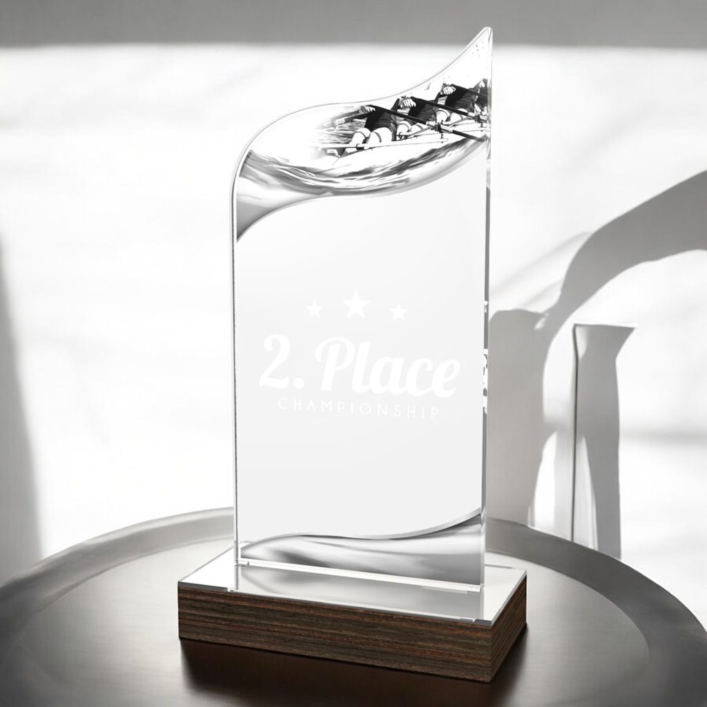The United Rowing Acrylic Wood Fusion Trophy Trophy blends contemporary elegance with a bold acrylic design, making it a striking choice for any recognition.