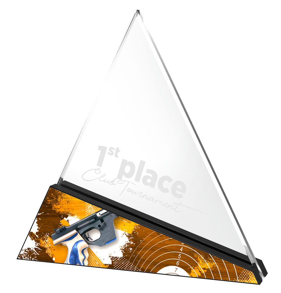 The Urban Printed Acrylic Shooting Award is a truly ingenious new in-house designed trophy. This award is made using 10mm thick premium acrylic mounted in-between two pieces of shaped black 10mm thick acrylic. This gives the trophy a very professional sturdy base.