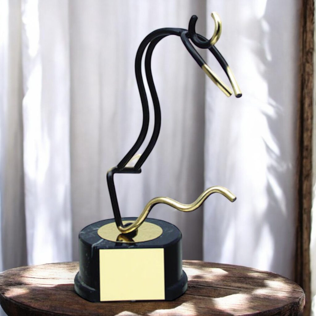 Originating from the vibrant city of Barcelona, Spain, this award is part of a prestigious collection of handmade trophies. Each trophy is meticulously crafted from premium metals such as brass, copper, nickel, pewter, and steel, creating a stunning visual display. The unique oxidization process of the metals ensures that no two trophies are alike, adding a sense of individuality to each piece.