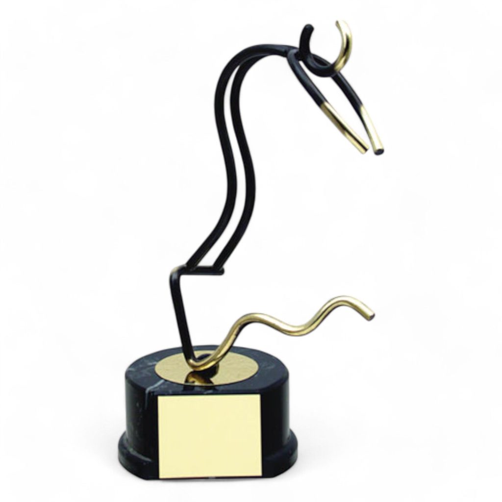 Introducing the exquisite Valencia Swimming Trophy, a meticulously handcrafted metal award that exudes elegance and sophistication. This exclusive trophy is expertly mounted on a unique marble effect wooden base, adding a touch of opulence to any space.