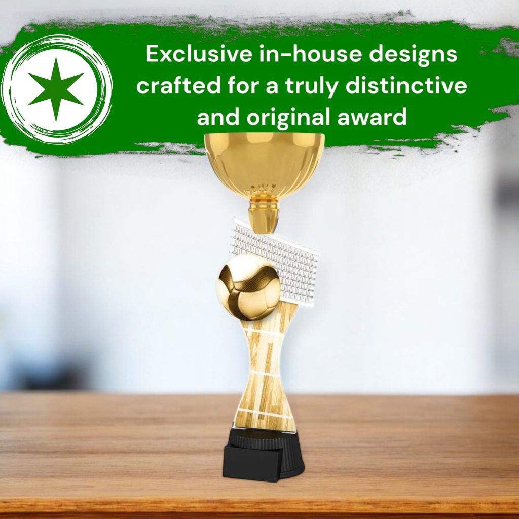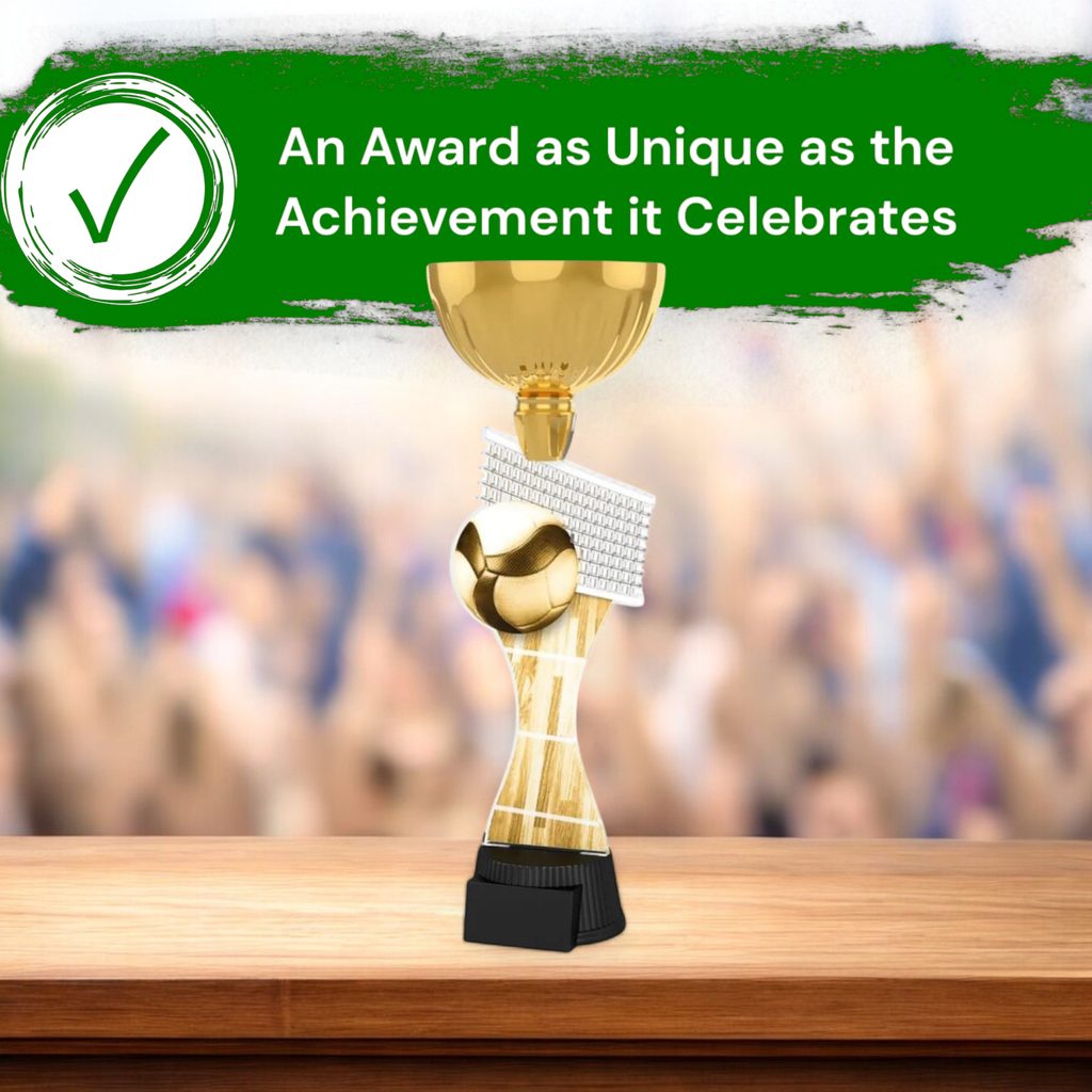 The Vancouver Classic Volleyball Gold Cup Trophy is a prestigious award that adds grandeur to any event.