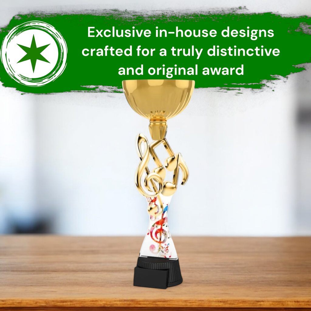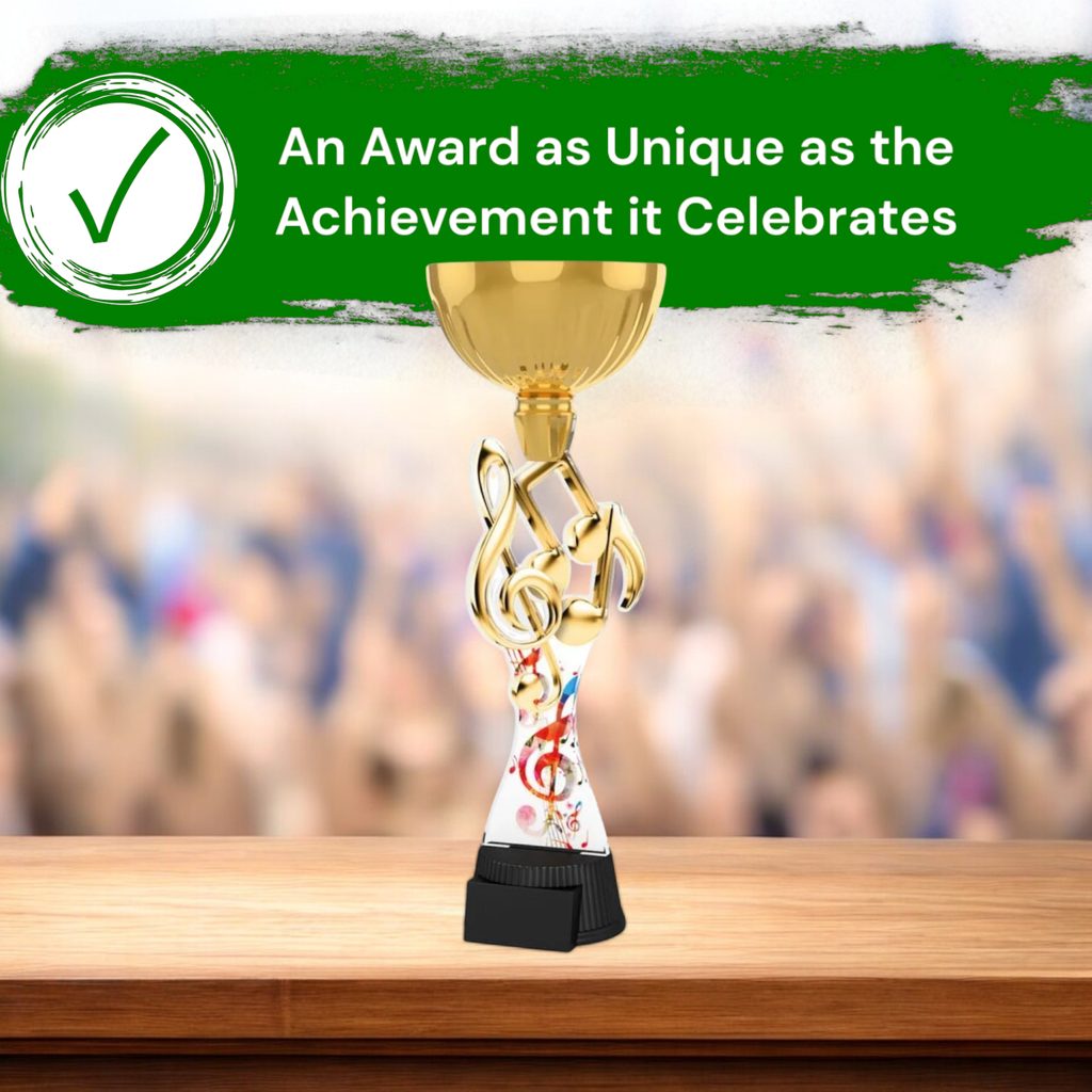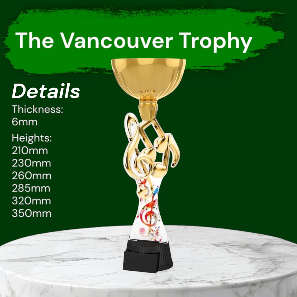 The Vancouver Music Notes Gold Cup Trophy is a prestigious award that adds grandeur to any event.