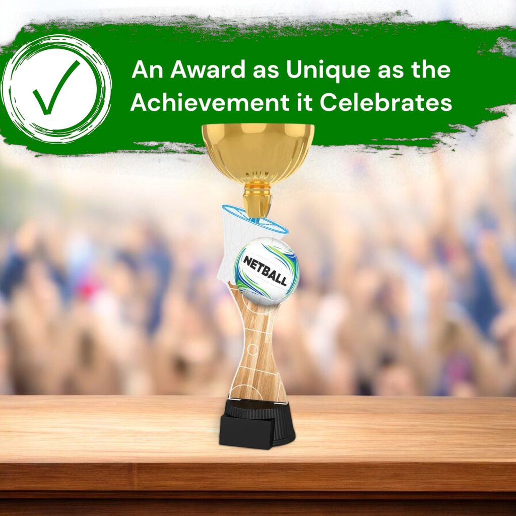 The Vancouver Netball Gold Cup Trophy is a prestigious award that adds grandeur to any event.