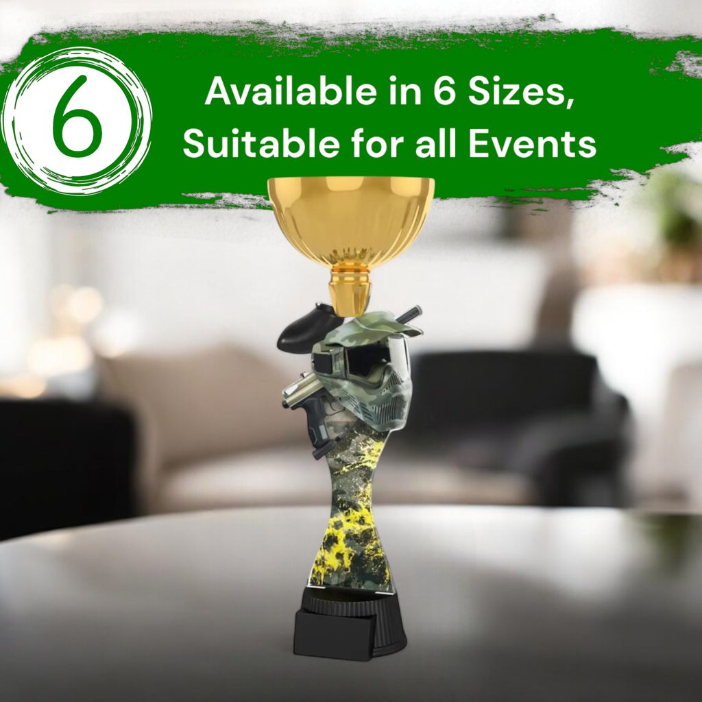 The Vancouver Paintball Gold Cup Trophy is a prestigious award that adds grandeur to any event.