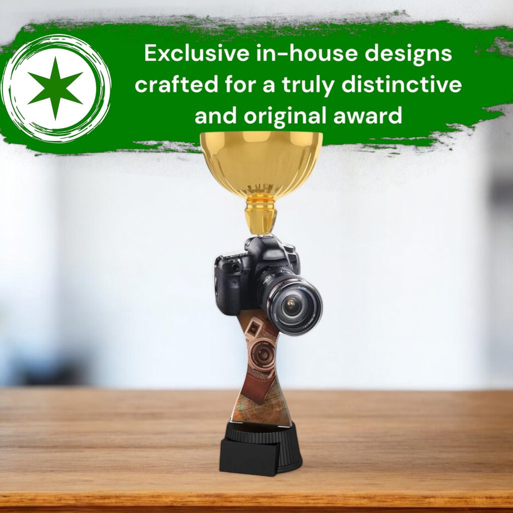 The Vancouver Photography Gold Cup Trophy is a prestigious award that adds grandeur to any event.
