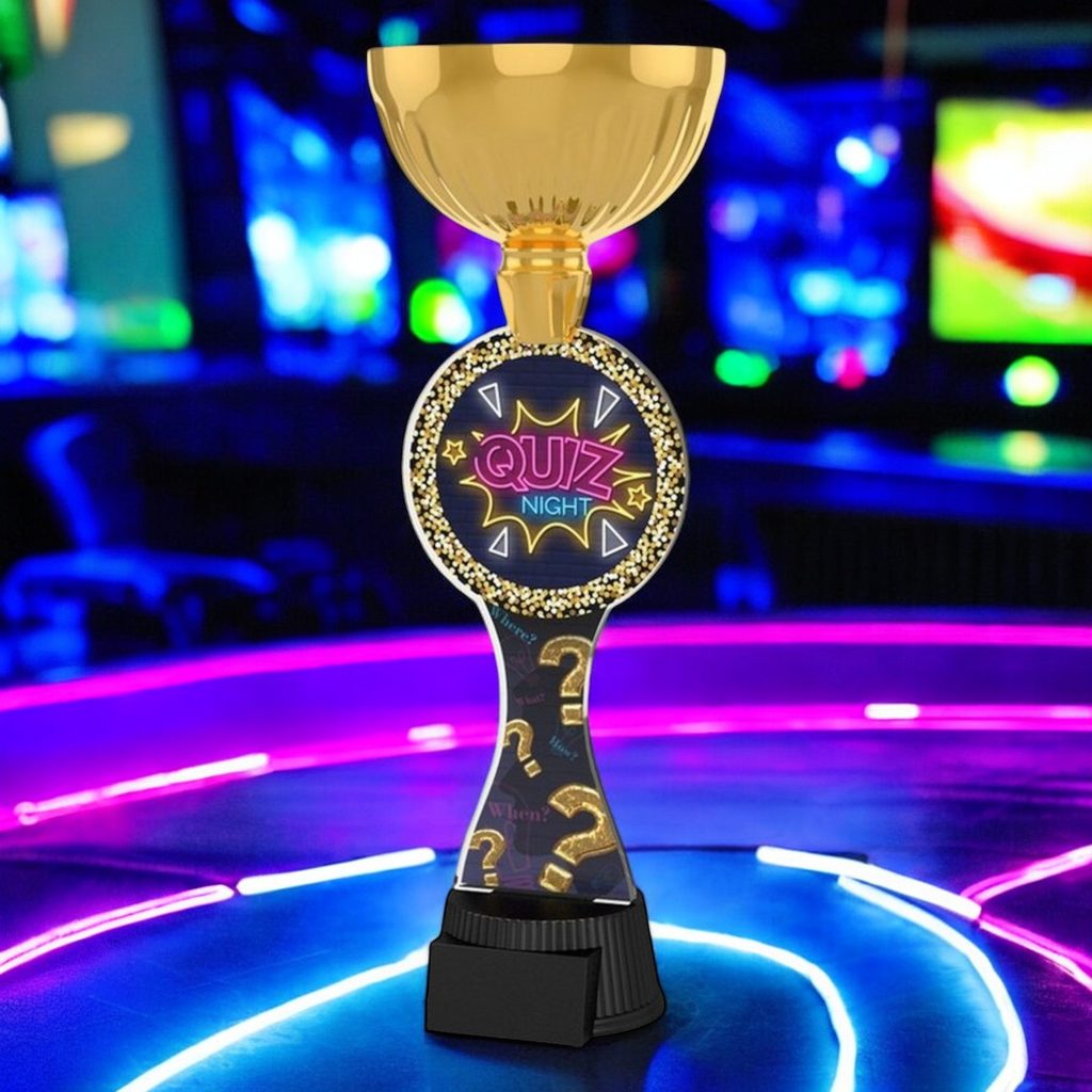 The Vancouver Quiz Night Gold Cup Trophy is a prestigious award that adds grandeur to any event.