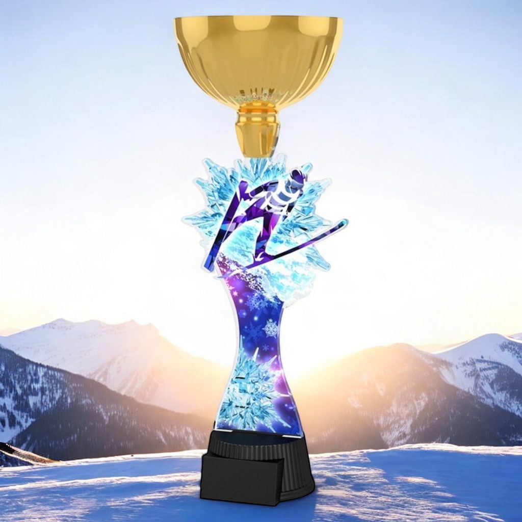 The Vancouver Ski Jump Gold Cup Trophy is a prestigious award that adds grandeur to any event.