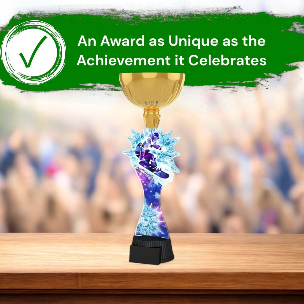 The Vancouver Snowboarding Gold Cup Trophy is a prestigious award that adds grandeur to any event.