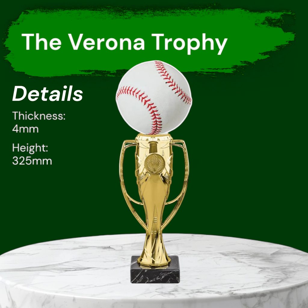 The Verona Baseball Trophy offers a sophisticated design with a customisable touch, making it a standout choice for any achievement.