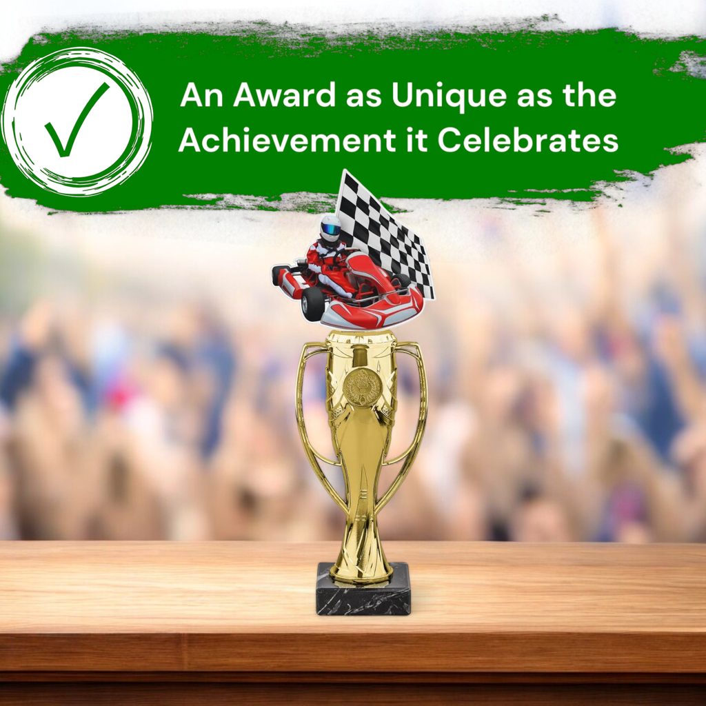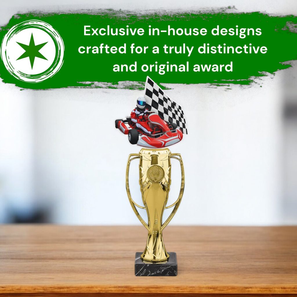 The Verona Go Kart Trophy offers a sophisticated design with a customisable touch, making it a standout choice for any achievement.
