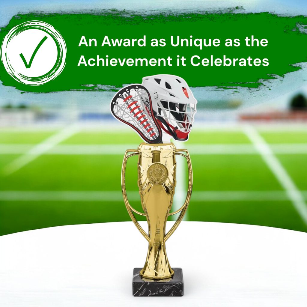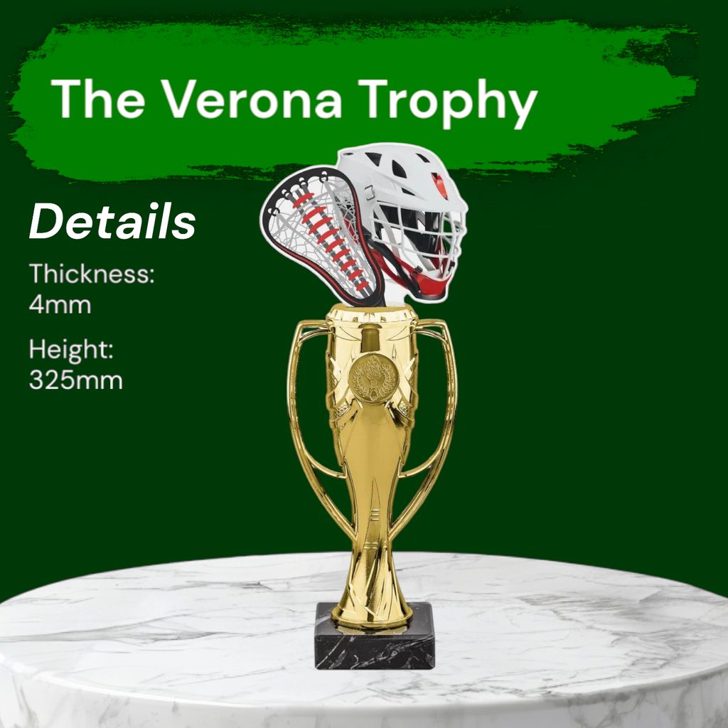 The Verona Lacrosse Trophy offers a sophisticated design with a customisable touch, making it a standout choice for any achievement.