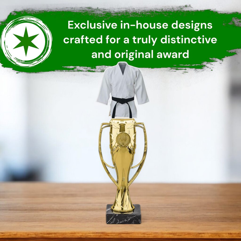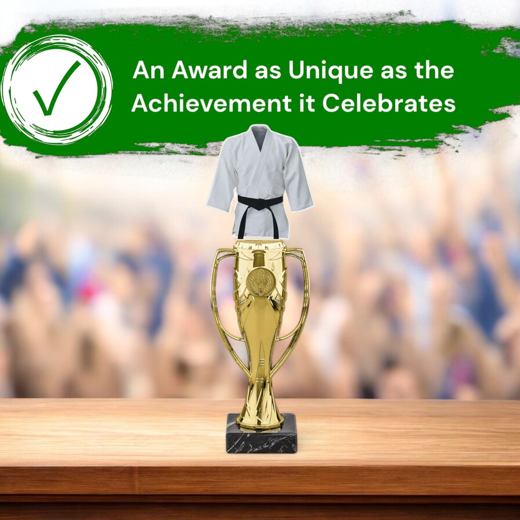 The Verona Martial Arts Jacket Trophy offers a sophisticated design with a customisable touch, making it a standout choice for any achievement.