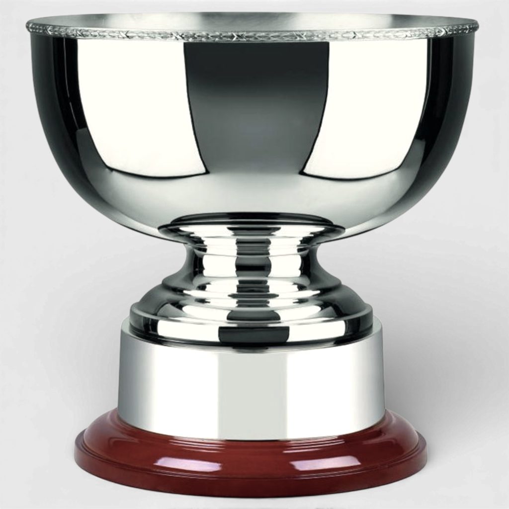 The Victory Wreath Edged Nickel Plated Bowl is a distinguished British-made award, combining traditional styling with a durable non-tarnish finish. Handmade in Great Britain by Swatkins and part of the refined Revolution Collection, this elegant bowl features a decorative wreath edge and is mounted on a circular rosewood finish base.