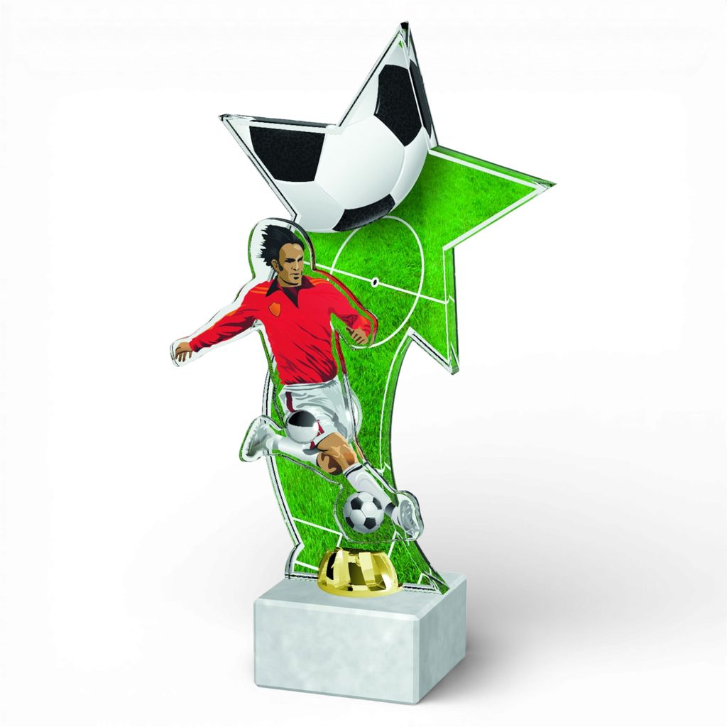 The Vienna Football Star Player Trophy is a stunning and innovative award, designed to bring a bold, contemporary touch to any presentation. As part of an exciting new range, this trophy stands out with its precision-cut shape and high-quality full-colour reverse print on 10mm thick acrylic, creating a striking visual effect that captivates from every angle.