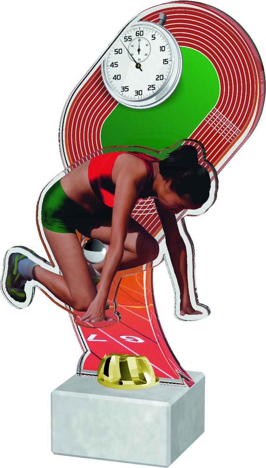 The Vienna Running Track Female Athlete Trophy is a modern and unique award with standout features.