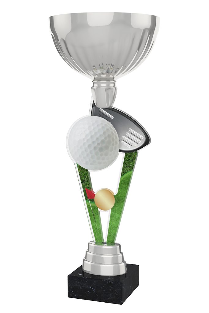 1x 2nd place unqiue silver metal and acrylic golf trophy cup (height 350mm)