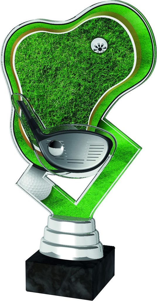 1x Fully colour printed acrylic two piece Nearest the Pin trophy (height 195mm)